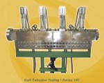 products from a single extruder. This system can also be configured to co-extrude up to three layers as well as single or multiple stripes. The Series 100 is engineered for compounding, coating of wire or thread, small tubes or small profiles. Major applications in addition to compounding include: electronic, medical, OEMs and wire & cable.